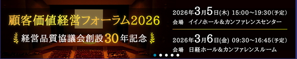 経営品質協議会主催の「顧客価値経営フォーラム2026」が以下の日程で開催されます。
