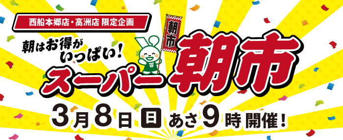 3月8日(日)スーパー朝市(西船本郷店、高洲店)開催!