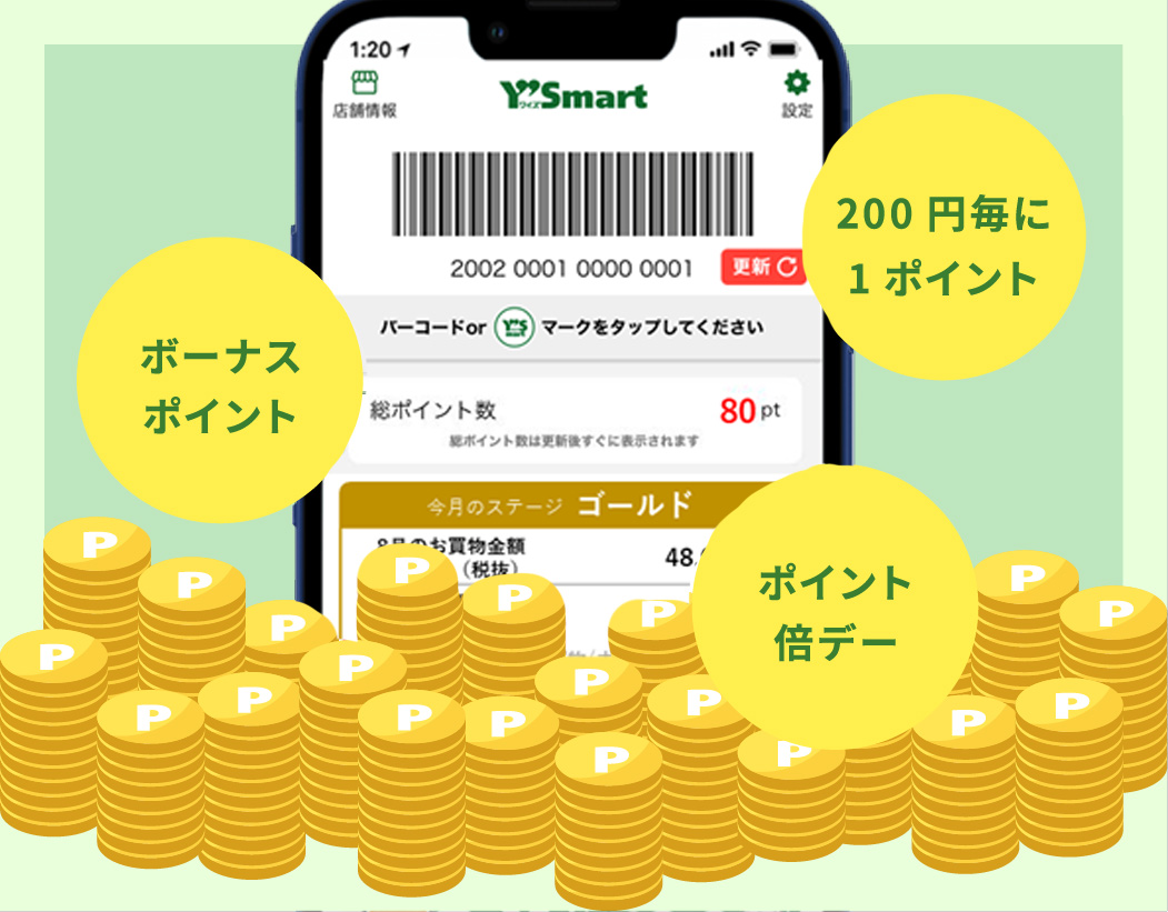 必ず、特典ポイントクーポンに表示される会員番号(バーコード)をレジにてスキャンする必要があります。 -