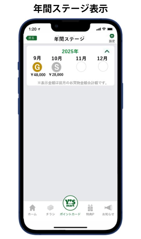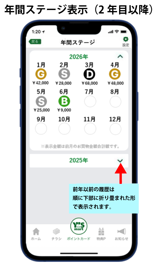 今月のステージと前月と今月のお買い物金額合計(税抜)