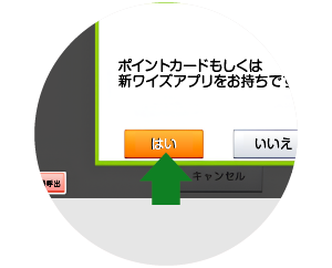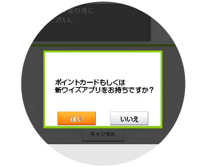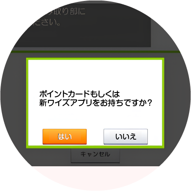 ポイントカード、もしくはワイズアプリをお持ちですか?の確認メッセ―ジが表示されます。