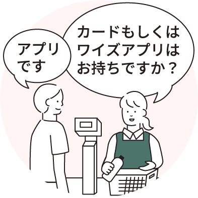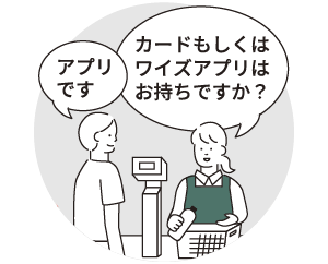 お伝えくださいレジスタッフが「カードもしくはワイズアプリはお持ちですか?」と聞かれたら「アプリです」とご返答ください。 -