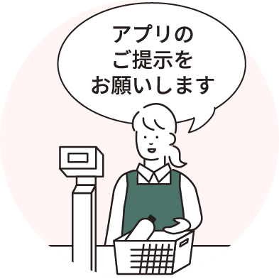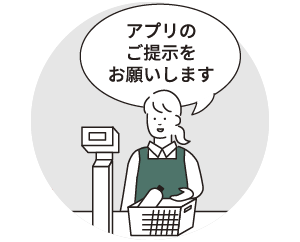 ご提示ください次に「アプリのご提示をお願いします」と言われたら、スマホ画面の会員コードをご提示下さい。 -