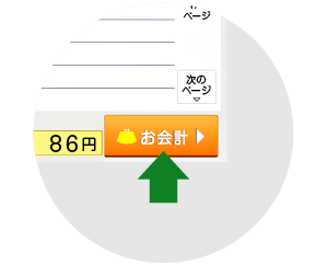 「お会計」タップ全ての商品のスキャンが終わりましたら、レジ画面右下の「お会計」ボタンをタップします。