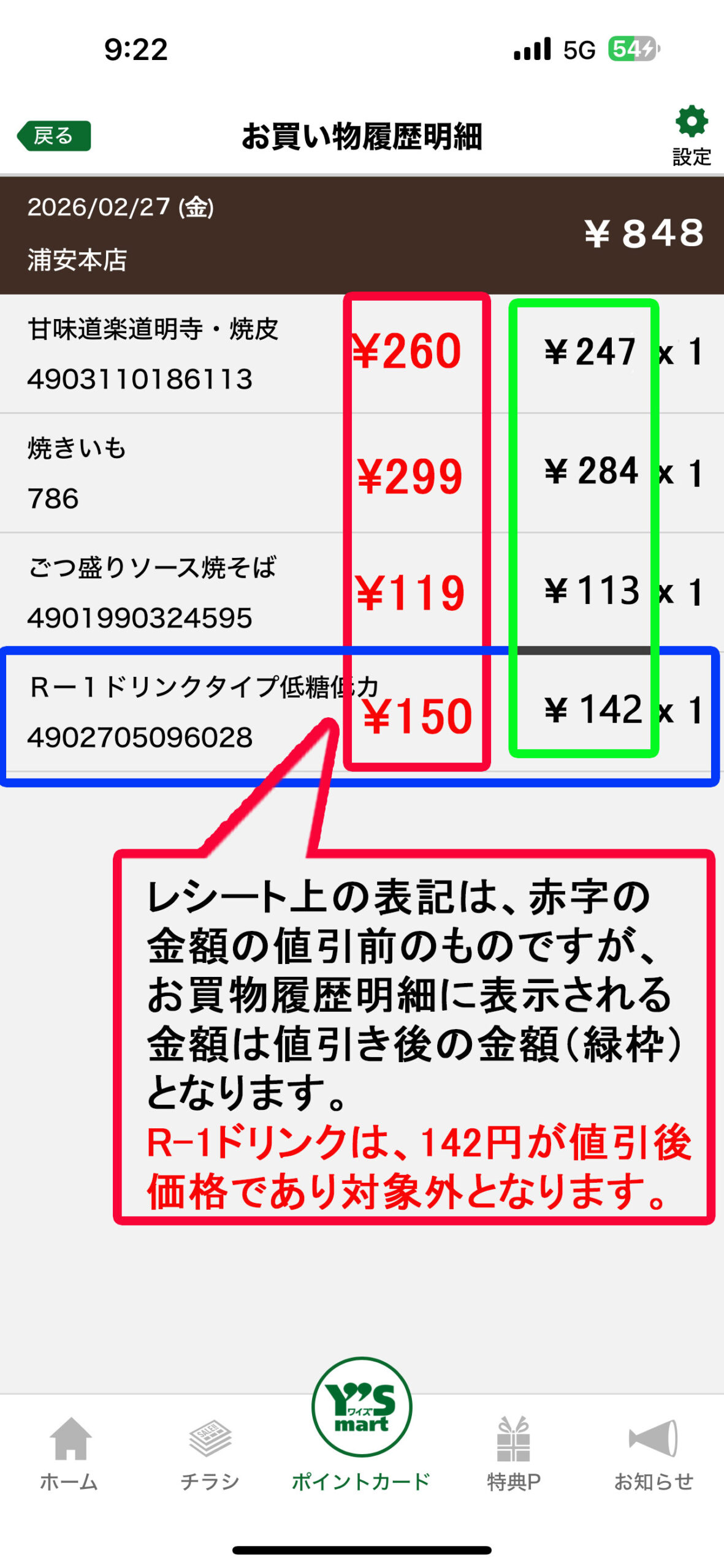 ワイズアプリを使ってのお買物ポイントサービスは利用できません