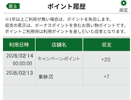 • ・ポイント履歴