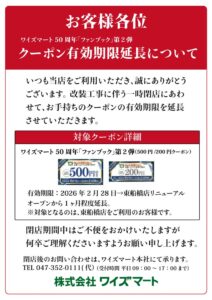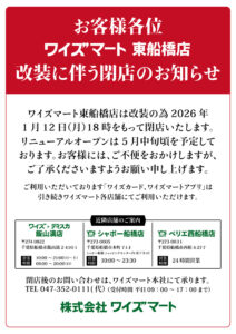 ワイズマート東船橋店 改装に伴う閉店のお知らせ