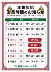 年末年始の営業時間のご案内です